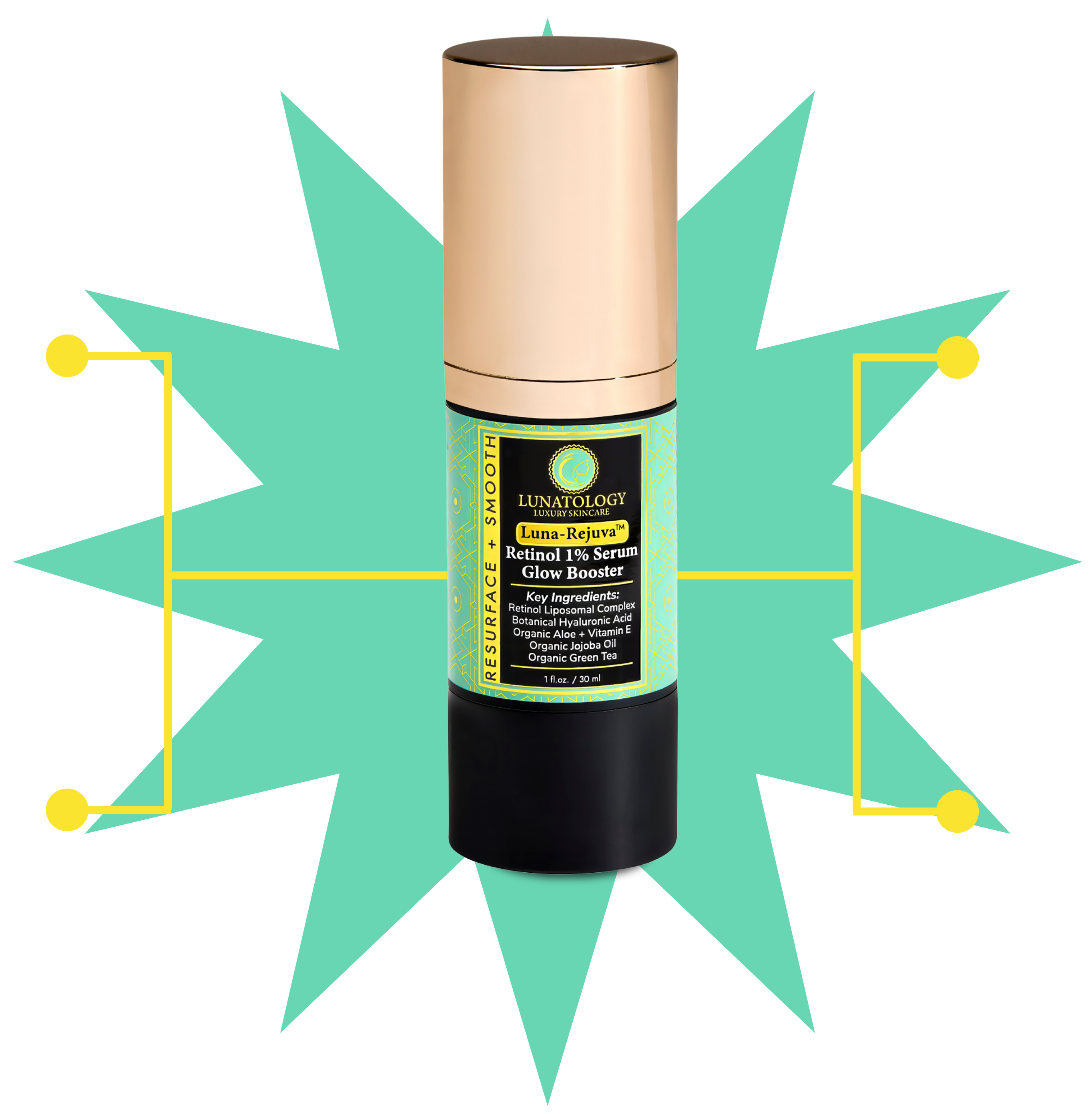 This advanced 1% Retinol Liposomal Complex is paired with hydrating botanicals like Hyaluronic Acid, Aloe, and Jojoba Oil for maximum results with minimal irritation. Enriched with antioxidant-rich Green Tea and Vitamin E, it works to resurface, smooth, and protect skin. The formula’s balanced blend enhances each ingredient’s performance, delivering renewal, hydration, and defense in one powerhouse serum.