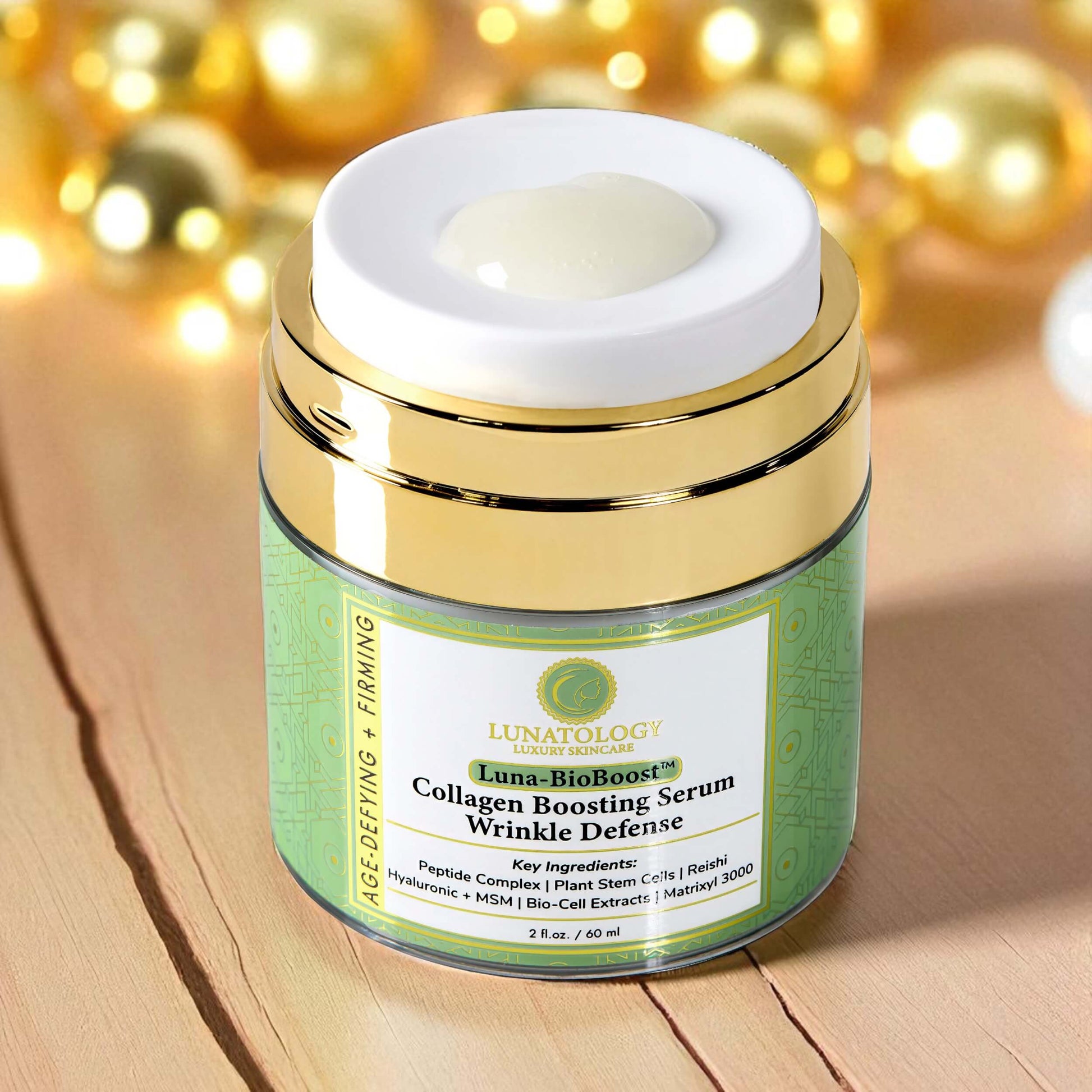 A powerful collagen boosting and wrinkle defense treatment serum! Leveraging the advances in Plant Stem Cell technology and advanced Peptides, this multi-purpose anti-aging serum does wonders for face, eyes, and neck. This formulation is focused on reducing the appearance of wrinkles, helping to boost collagen and restore elasticity. Fortified with the healing power of Aloe, hydration from Hyaluronic Acid, brightening from Reishi Mushroom and Licorice Root, and tightening from Eye Bright, this effective and powerful serum leaves skin feeling firmer, younger and more beautiful.