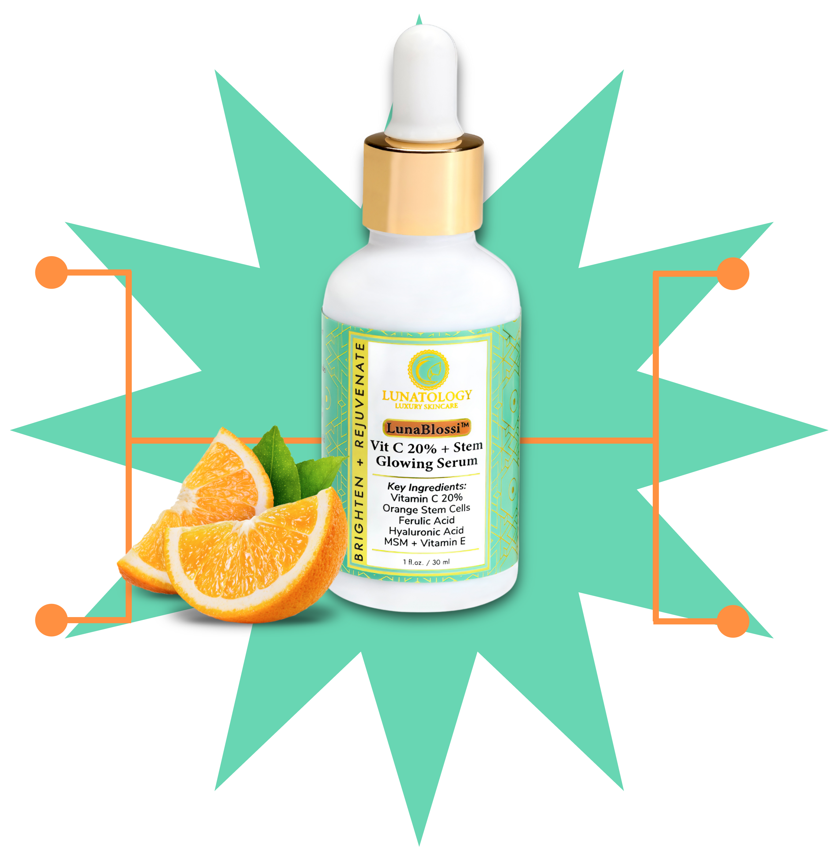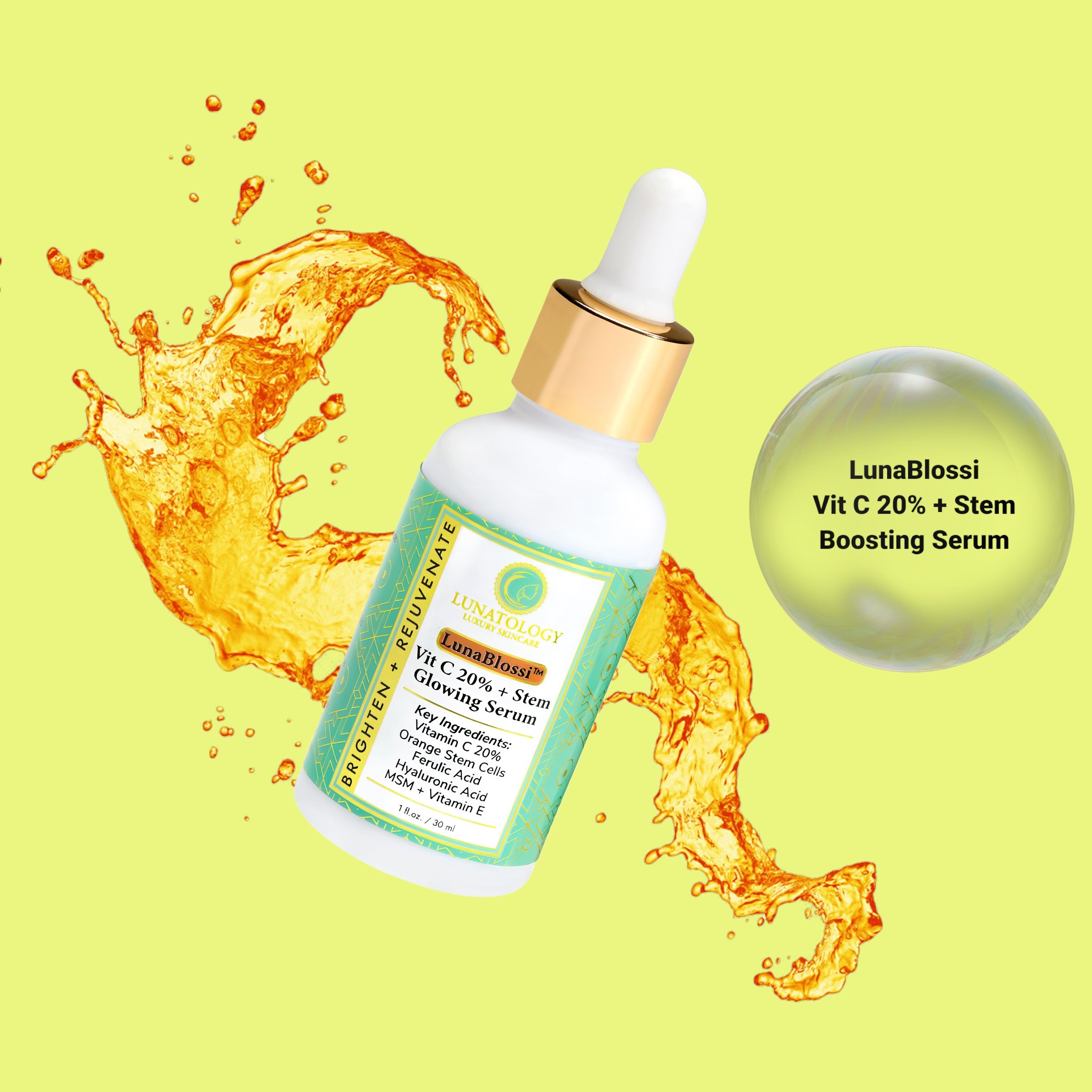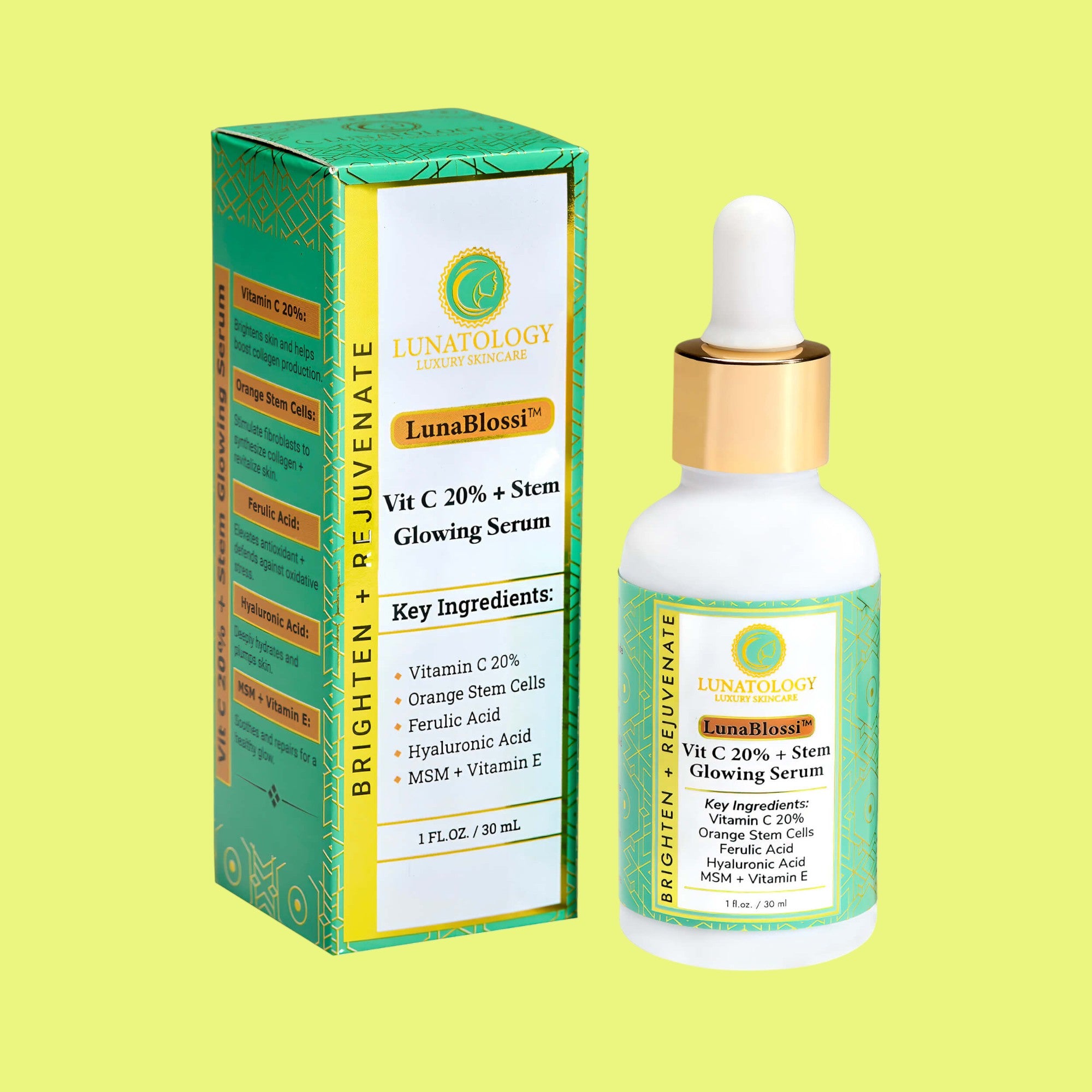 • This blend is a hero formulation and a must-have! Lunablossi is powered by 20% stable Vitamin C and botanical Orange Stem Cells, elevated with Ferulic Acid, MSM, and Vitamin E to enhance and maximize efficacy to another level. This precision-blended formula not only brightens and firms but also delivers enhanced stability, deeper absorption, and amplified results compared to standard Vitamin C serums. A true game changer!