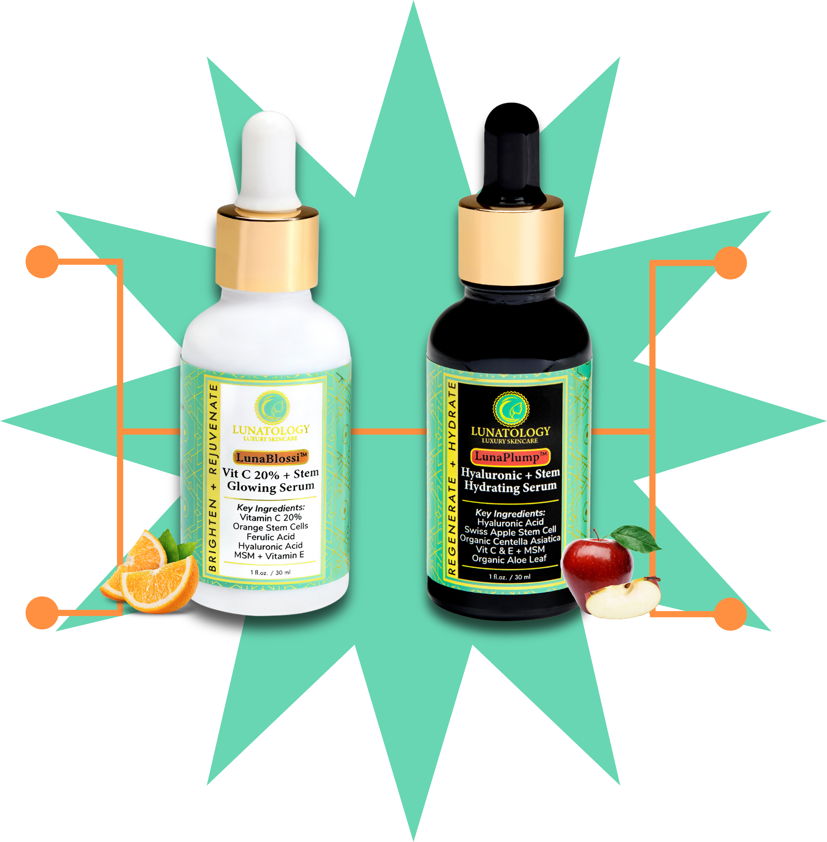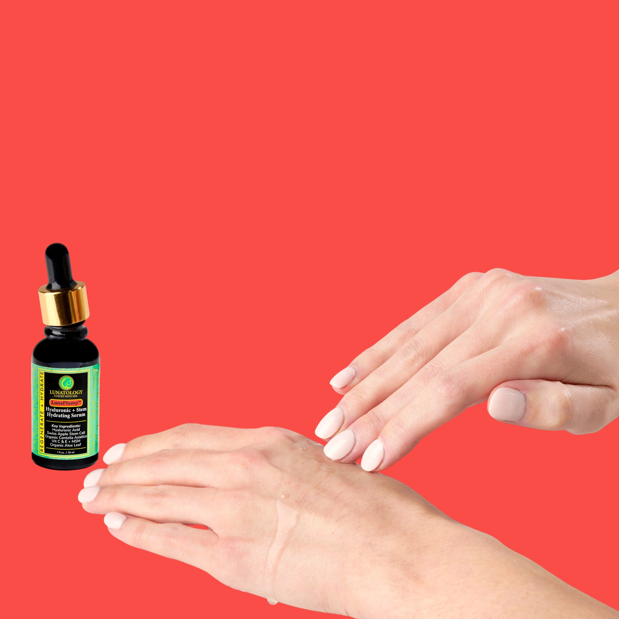 Lunaplump Hyaluronic Acid Serum follows with deep hydration from Botanical HA, firmness-boosting Apple Stem Cells, and MSM for maximum ingredient delivery. Together, they brighten, plump, and defend, leaving skin radiant, resilient, and beautifully balanced.